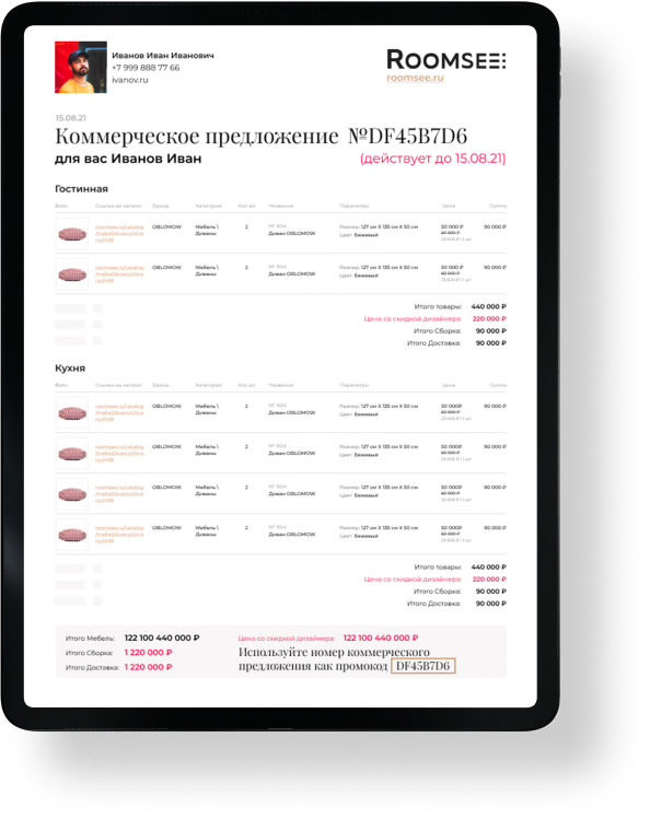 У вас будет пространство, где сможете сформировать подборки товаров для сметы, оформить ее как коммерческое предложение и отправить заказчику.
